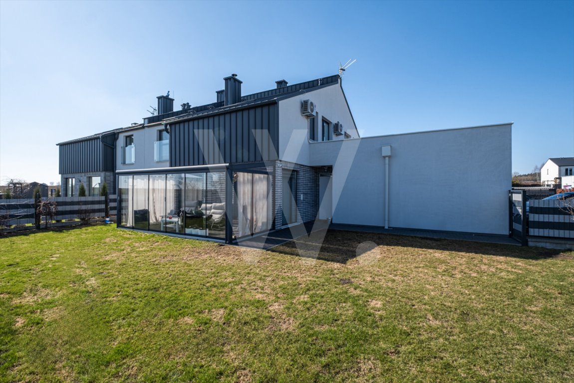 Działka o powierzchni 362 m² daje komfortową przestrzeń ogrodową. Za ogrodem znajdują się tereny zielone, co wzmacnia poczucie prywatności i otwartej przestrzeni.