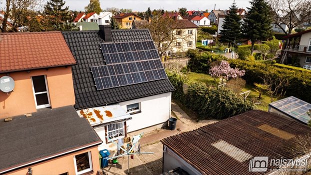Na dachu od strony podwórka zamontowane są panele fotowoltaiczne, które generują bardzo niskie opłaty za prąd.