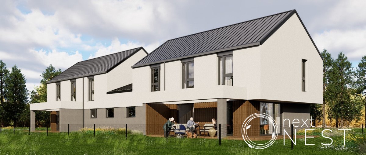 Dom jednorodzinny w zabudowie dwulokalowej (powierzchnia łączna działki pod dwa domy - 1200 m2).