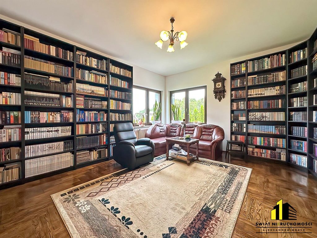 • Elegancka, dwustronna biblioteka połączona z salonem.