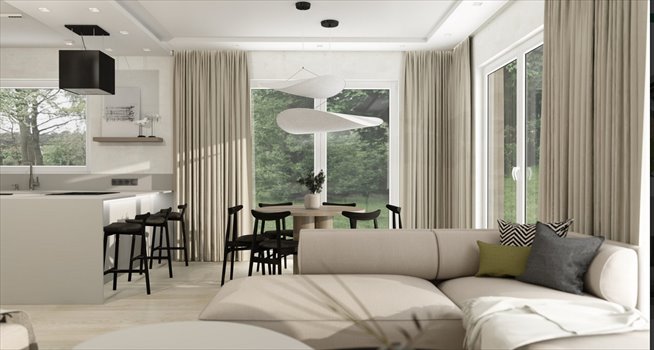 - salon z jadalnią o powierzchni 26,24 i wyjściem na ogród o powierzchni 179 m2,