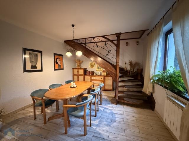 W drugiej części domu na piętrze znajduje się osobne wejście prowadzące do drugiego mieszkania o powierzchni 60 m2. W skład, którego wchodzą pokój dzienny ,sypialnia kuchnia ,łazienka z wc oraz przedpokój.