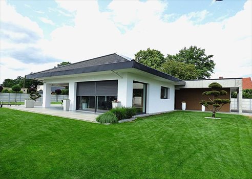 Rok budowy: 2020Technologia budowy: cegła porothermDach: wiązary ocieplone pianą Icynene 25 cm + sufit ocieplony tą samą pianąPokrycie dachu: dachówka Bradas Turmalin GlazuraOcieplenie ścian: 2x 12 cm styropian grafitowy ułożony na zakładkęElewacja: tynk silikonowy dodatkowo malowany dwukrotnie farbą silikonowąOkna: trzyszybowe MSBrama garażowa: HormannDrzwi zewnętrzne: aluminiowe, antywłamaniowe, automatycznie ryglowane po zamknięciuDrzwi wewnętrzne: aluminiowe Piu DesignPosadzki: anhydrytWentylacja mechaniczna z rekuperacją: VaillantOgrzewanie i chłodzenie: pompa ciepła Vaillant z funkcją chłodzenia przez podłogę + ogrzewanie podłogowe w całym domuInstalacja przygotowana do podgrzewania wody w basenieInteligentne i bezpieczne rozwiązania: