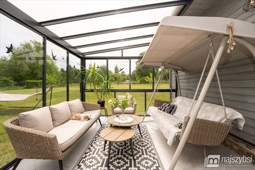 Z salonu znajduje się wyjście na przeszklony taras o konstrukcji aluminiowej - można korzystać cały rok!