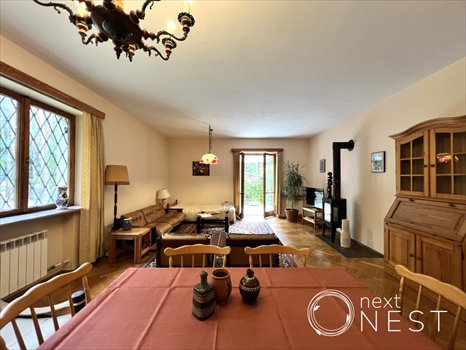 Dom zaprojektowany i wybudowany na początku lat 80-tych przez właściciela, który był architektem. Modernistyczna, prosta bryła oraz funkcjonalne wnętrze z dużymi, doświetlonymi przestrzeniami. Budynek zadbany, na bieżąco remontowany, utrzymany w dobrym stanie technicznym. Nigdy nie zmieniał właścicieli. Obecnie wnętrza wymagają remontu, ale znajdziemy w nich też ponadczasowe elementy, jak oryginalne czerwone drzwi, które z powodzeniem można wkomponować w nowoczesny projekt wnętrz. Kuchnię można otworzyć na salon, uzyskując otwartą przestrzeń dzienną. Duża, zalesiona działka daje dodatkowo możliwości aranżacji pięknego ogrodu.