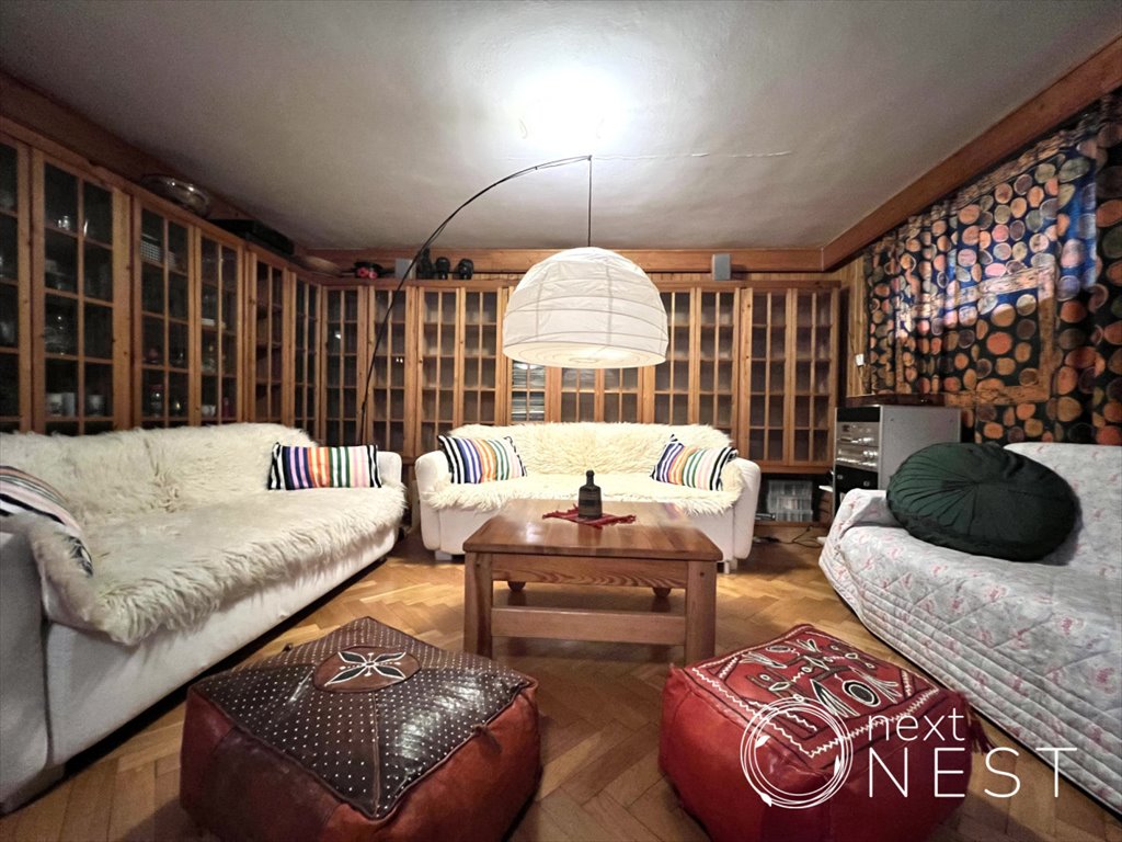 Dom zaprojektowany i wybudowany na początku lat 80-tych przez właściciela, który był architektem. Modernistyczna, prosta bryła oraz funkcjonalne wnętrze z dużymi, doświetlonymi przestrzeniami. Budynek zadbany, na bieżąco remontowany, utrzymany w dobrym stanie technicznym. Nigdy nie zmieniał właścicieli. Obecnie wnętrza wymagają remontu, ale znajdziemy w nich też ponadczasowe elementy, jak oryginalne czerwone drzwi, które z powodzeniem można wkomponować w nowoczesny projekt wnętrz. Kuchnię można otworzyć na salon, uzyskując otwartą przestrzeń dzienną. Duża, zalesiona działka daje dodatkowo możliwości aranżacji pięknego ogrodu.