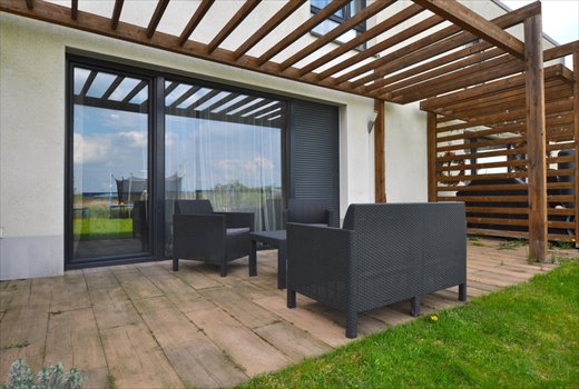 Z tyłu domu znajduje się taras i piękny, zielony ogród, zaś z przodu wyłożony kostką plac, gdzie możemy parować samochody.
