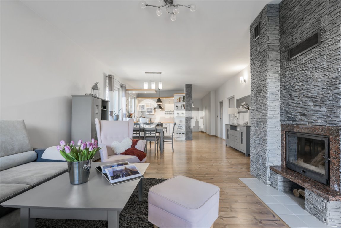 Sercem domu jest wysoki, dobrze doświetlony salon płynnie połączony z kuchnią wykonaną z naturalnego drewna. Z salonu wyjdziemy na duży taras, który stanowi naturalne przedłużenie strefy wypoczynkowej. Dom przeszedł w 2024 roku renowację elewacji, co w połączeniu z grubą warstwą termoizolacji gwarantuje trwałość i optymalne utrzymanie ciepła.
