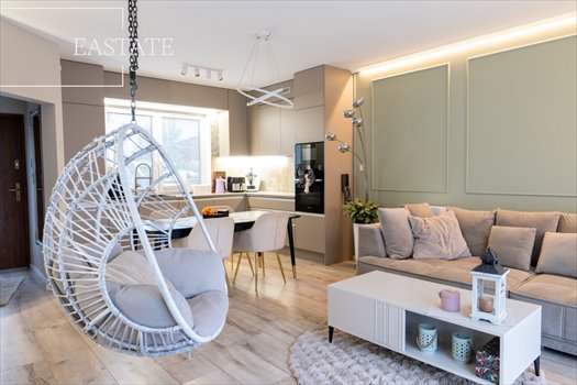 - Przestronny salon połączony z nowoczesnym aneksem kuchennym - 29 m2,