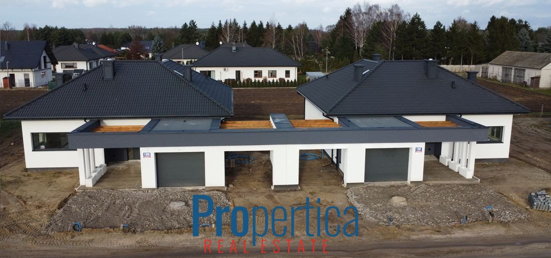 Mam przyjemność zaprezentować Państwu parterowe domy wolnostojące z 2025 r. o powierzchni 139,85 m² połączone ze sobą wiatami garażowymi.