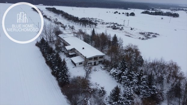 Budynek o wymiarach ok. 51 m x 10 m, pow. ok. 1000m2, składa się z 3 pokoi, kuchni, łazienki, WC, ogromnej powierzchni magazynowej z możliwością przekształcenia według własnej wizji. Niewykończonego pietra przygotowanego do ocieplenia, gdzie pozostała nawet wełna mineralna. Posiada również 2 balkony, 2 tarasy, zasilanie 3-fazowe, potężną rozdzielnię elektryczną. Dach blaszany.