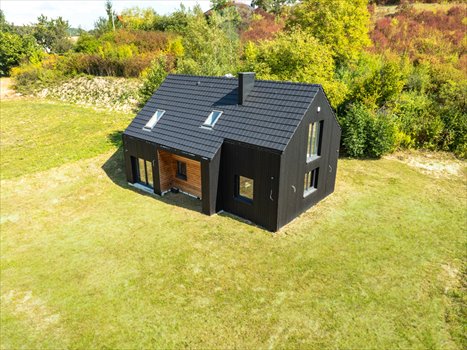 Dom, budowany w latach 2016-2022, czeka na swoich pierwszych właścicieli, nigdy nie był zamieszkały na stale. Jego unikalny charakter podkreśla zewnętrzna elewacja z opalanej metodą Shou Sugi Ban skandynawskiej drewnianej deski świerkowej od Wood Of Fire, nadającej budynkowi głęboki, szlachetny odcień i wyjątkową trwałość.