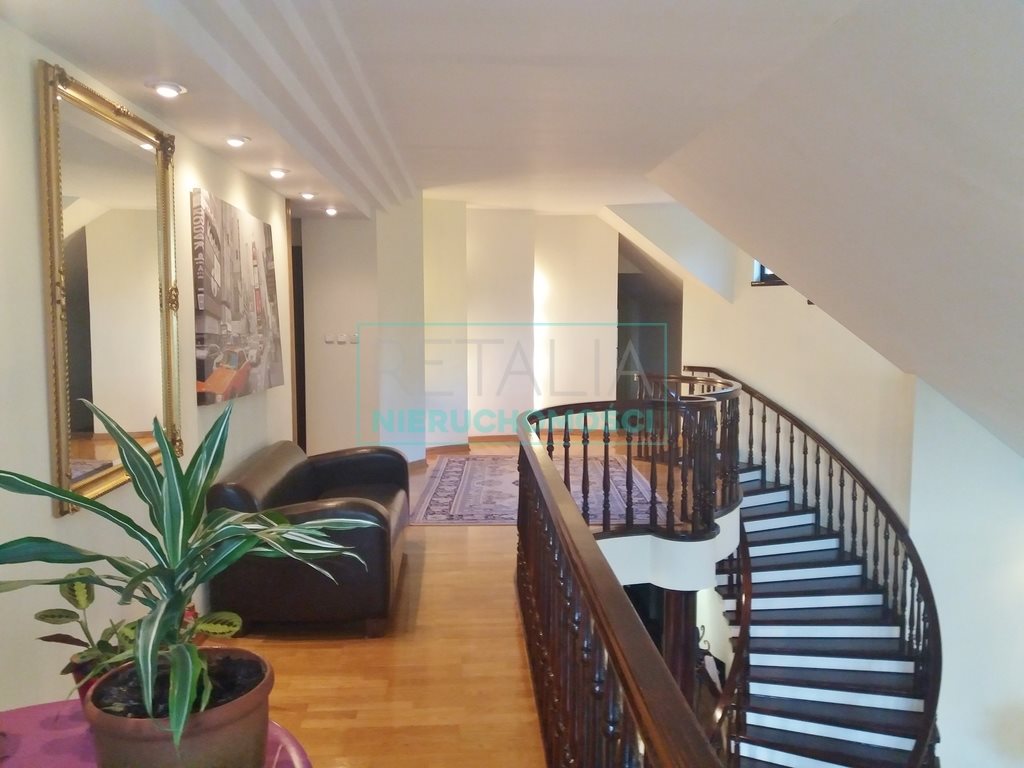 Poddasze użytkowe składa się z trzech sypialni, w tym 2 z garderobą, łazienki, korytarza i antresoli. Każda sypialnia ma balkon. Dodatkowo jest jeszcze strych. W piwnicy z kolei znajdują się pralnia z suszarnią, sala hobby, sauna, natrysk, barek, kotłownia i warsztat.