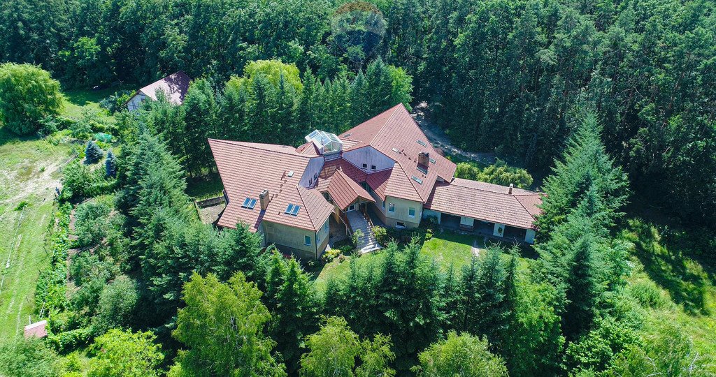 Nieruchomość na sprzedaż składa się z dwóch działek geodezyjnych, które trzeba zakupić łącznie. 1. działka (nr 851/13) o pow. 5694 m2 zabudowana bardzo dużym domem wolnostojącym o funkcji mieszkalnej oraz mniejszym budynkiem (ok. 115 m2), który pełni obecnie funkcję stajni, ale po przebudowie można ją zmienić na funkcję mieszkalną. 2. działka (851/8) o pow. 3087 m2, na której znajduje się przydomowa oczyszczalna ścieków i można pobudować inny budynek wolnostojący oraz np. parking.