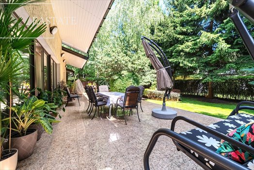 Ogród należy do przestrzeni wyjątkowo zadbanych i zazielenionych. Dzięki bardzo dużej ilości roślin, w tym obecności drzew wysokich, w jego przestrzeni zawsze odnaleźć można liczne zacienione fragmenty. Doskonale łączy się on również z rozległymi tarasami przynależącymi do domu. Działka o wymiarach 50 x 75 metrów posiada również system automatycznego nawadniania, który zasilany jest wodą pochodząca z własnej studni.