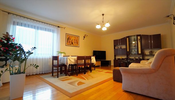 Na podłodze w salonie drewniany parkiet, natomiast w pozostałych pokojach panel.