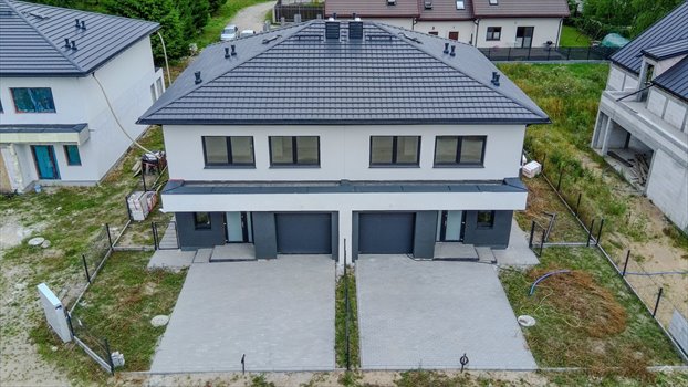 Nieruchomość wybudowana w 2023 roku w technologii murowanej tradycyjnej, na dachu zastosowano blachodachówkę, a dom został posadowiony na płytach fundamentowych, co zapewnia lepszą izolację termiczną, a także stabilność konstrukcji.