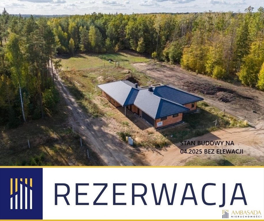 Budynek parterowy w stanie deweloperskim z garażem dwustanowiskowym w bryle - oddanie do użytku IX 2025. Media: doziemna instalacja elektryczna, gazowa, wodociągowa (studnia wiercona) oraz sanitarna w postaci zbiornika szczelnego (wszystkie przyłącza doprowadzone do budynku). Zaopatrzony w system ogrzewania podłogowego oraz przyłącza do klimatyzacji. Dodatkowe źródło ciepła może stanowić pompa ciepła oraz kominek (jest wyprowadzenie).