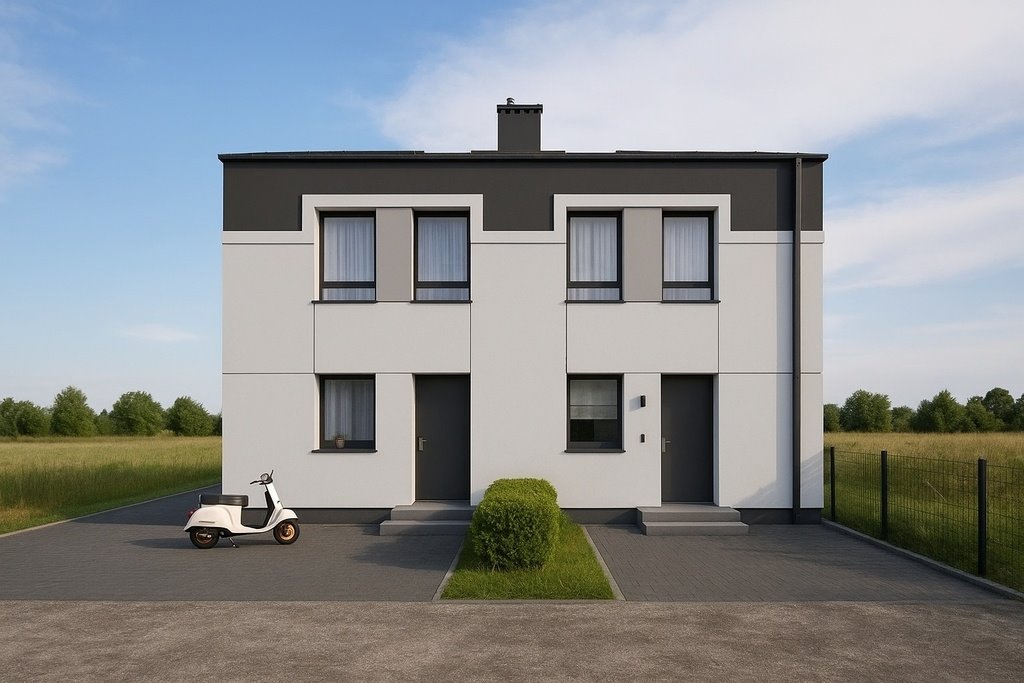 Nowoczesna przestrzeń do życia Każdy z domów to funkcjonalne 85 m² starannie zaprojektowanej powierzchni, rozłożonej na dwóch kondygnacjach. Parter to przestronny salon z aneksem kuchennym, łazienka i praktyczne pomieszczenie gospodarcze. Na piętrze – aż trzy sypialnie i druga łazienka – idealne rozwiązanie dla rodziny lub osób pracujących zdalnie.