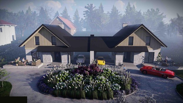 Wizualizacja jest poglądowa, budynki będą miały białą elewacje, dach okna w kolorze antracyt. Inwestycja jest na etapie stanu surowego zamkniętego, ewentualne zmiany pod klienta będą jeszcze możliwe do wykonania ( przeróbki wewnątrz budynku typu instalacje elektryczne i hydrauliczne do momentu położenia tynków).