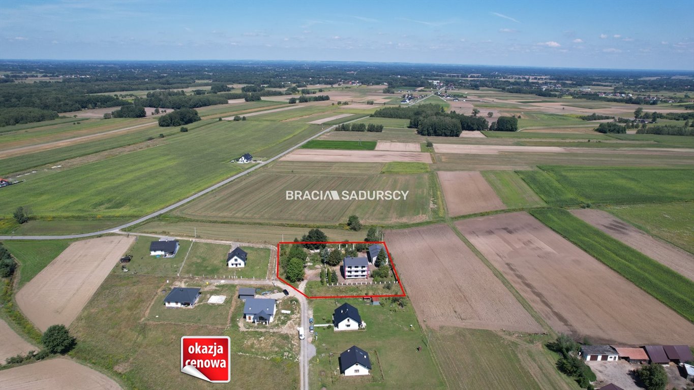 Nieruchomość w otoczeniu terenów zielonych, w pobliżu las, w odległości ok. 4 km od Dąbrowy Tarnowskiej i ok. 20 km od Tarnowa.