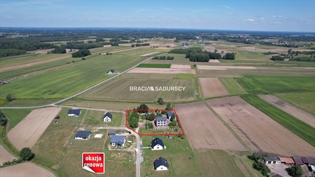 Oleśnica, okolice Dąbrowy Tarnowskiej. Dom wolnostojący z 3-ma samodzielnymi mieszkaniami o łącznej pow. użytkowej 338,0 m 2 , na działce o łącznej pow. 4103 m 2 .