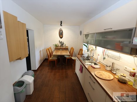 I mieszkanie składa się z parteru i piętra. Na parterze salon, kuchnia z jadalnią oraz łazienką, na piętrze bardzo duża sypialnia (klimatyzacja zewnętrzna) i jeden pokój. Podłogi parterowej częśći wyłaożone kaflami -ogrzewanie podłogowe, na piętrze podłogi pokryte panelami i ogrzewanie z grzejników. Kuchnia w pełni wyposażona (zmywarka, płyta indukcyjna, piekarnik - kuchnia na wymiar). W tej części znajduje się również piwnica, w której zlokalizowana jest kotłownia - ogrzewanie na olej opałowy (zbiorniki 1500 L). Łazienka z kabiną prysznicową, czas przebudowy i wykończenia tej części 2010 rok). Powierzchnia ok. 85 m2).