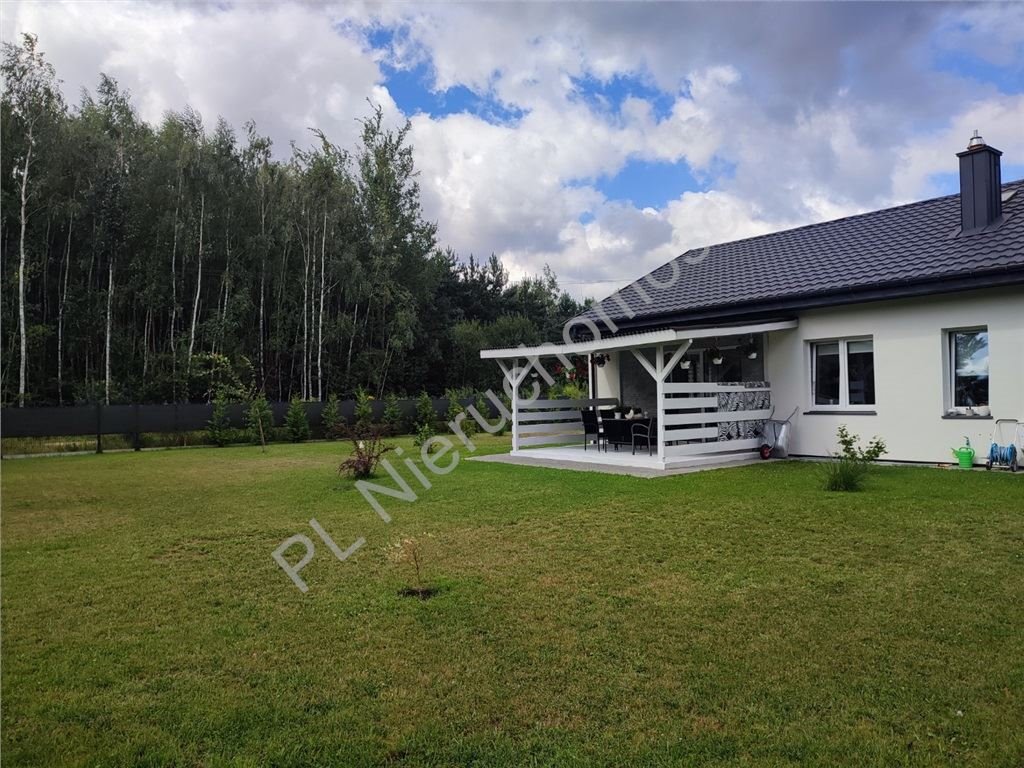 Działka ma powierzchnię 1000 m2 - jest w pełni zagospodarowana ( krzewy, trawnik), podjazd z kostki + wiata na samochód