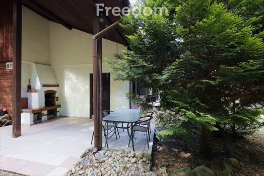 Wnętrze domu oferuje swobodę i komfort użytkowania, gdyż dom ma dwa osobne wejścia. Każda jego część posiada dwie komfortowe sypialnie z widokiem na las, funkcjonalny salon z kominkiem oraz aneksem kuchennym, łazienkę z prysznicem oraz przestronny i jasny pokój na poddaszu. Z każdej części domu jest wyjście na przestronny zadaszony taras oraz pięknie zagospodarowany ogród. Na działce znajduje się również lasek z wiekowymi pięknymi drzewami, naturalnie zagospodarowany oraz miejsce na ognisko.