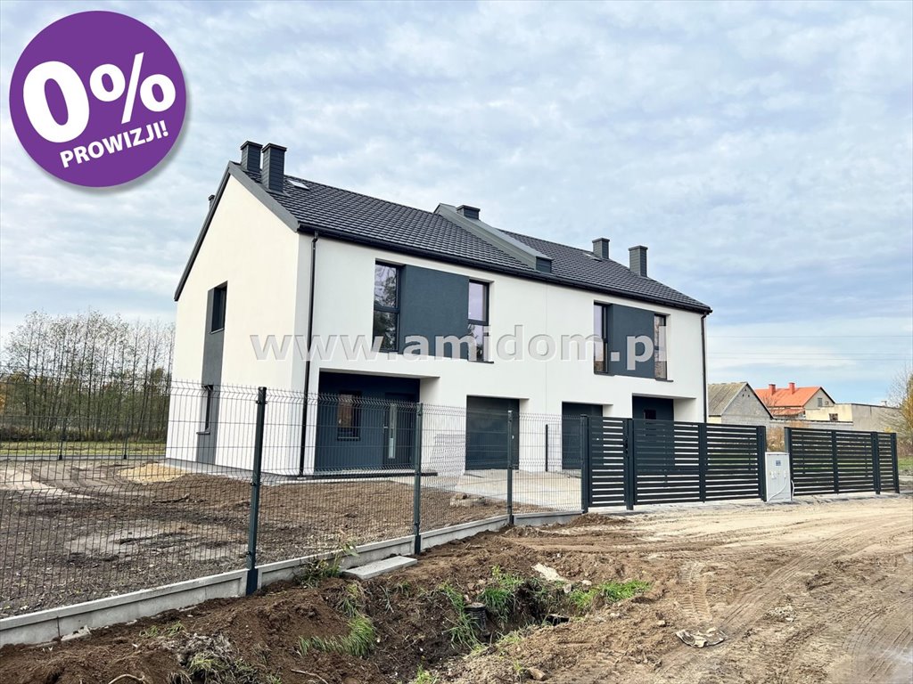 wybudowany z cegły ceramicznej porotherm; dach blachodachówka z podbitką i orynnowaniem; okna PCV (pakiet trzyszybowy), elewacja z dociepleniem zewnętrznym styropianem 20 cm; drzwi wejściowe: metalowe ocieplone; brama garażowa segmentowa; podjazd, chodnik, taras oraz opaska wokół domu wyłożone kostką brukową. W środku stan deweloperski obejmuje: tynki gipsowe; wylewki betonowe; instalacje: elektryczna (bez osprzętu), alarmowa, internetowa, wodno-kanalizacyjna, Tv w salonie; ogrzewanie podłogowe - parter (bez garażu), całe piętro; sufity na piętrze i docieplenie dachu oraz źródło ciepła we własnym zakresie kupującego.