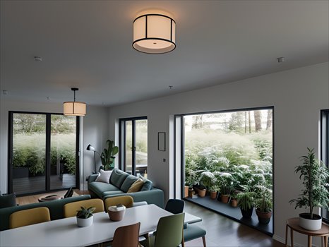 - Dwukondygnacyjny układ bez skosów – pełna wysokość pomieszczeń na piętrze.