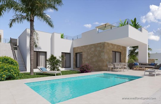 New villa project, nestled at the foot of the majestic Ponoig Mountain, offers the perfect blend of tranquility and convenience. Just a short drive from the development are various local commercial centres providing all the daily necessities, like supermarkets, banks and pharmacies, bars and restaurants, medical centre, and international schools.The vibrant city of Benidorm, renowned for its fantastic beaches, thrilling theme parks, and lively nightlife, is only 15 minutes away by car. Not forgetting the array of sports activities available, like golf, hiking, and water sports in the nearby coastal areas.The excellent road network ensures easy access to surrounding areas of interest like the charming village of Altea and the stunning Algar Waterfalls. Alicante Airport is conveniently located just 50 minutes away by car.These contemporary villas are available on one level or over two floors, both featuring 3 spacious bedrooms and 3 bathrooms. The main living area is a bright and spacious area, that seamlessly opens onto a partially covered terrace and private pool area, with breathtaking sea views. The villas on two floors include 2 en-suite bedrooms on the first floor, both with a private terrace. The villa’s modern design merges elements of natural stone with white facades, creating a warm and inviting atmosphere.Built with top-quality materials, these villas include pre-installation for ducted A/C, underfloor heating in the bathrooms, electric blinds, solar panels, a beautifully landscaped Mediterranean garden, a private pool with outdoor shower, and parking on the premises. Depending on the stage of construction, and for an additional price, it is possible to build a solarium level, perfect for those wanting extra outdoor space to enjoy the mild Mediterranean climate.Experience luxury living and convenience in this incredible home in Polop!