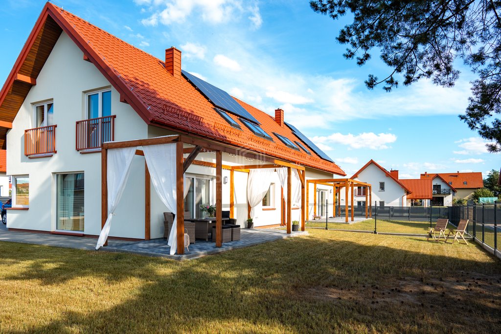 Domy zostały zaprojektowane z myślą o maksymalnym komforcie mieszkańców oraz dbałości o środowisko. Każdy budynek wyposażony jest w pompę ciepła, panele fotowoltaiczne (8 modułów PV, 2 falowniki), ogrzewanie podłogowe. Wszystko po to, by ograniczyć koszty eksploatacji i zapewnić energooszczędność na lata.