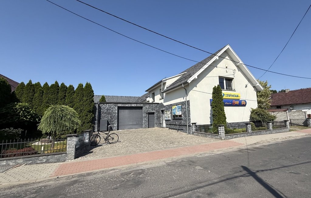 Parter domu to dobrze prosperujący sklep Lewiatan (108m²), biuro-magazyn (40m²), kotłownia i przytulna kawalerka z aneksem kuchennym i osobną łazienką (25m²), którą możesz dodatkowo wynająć.