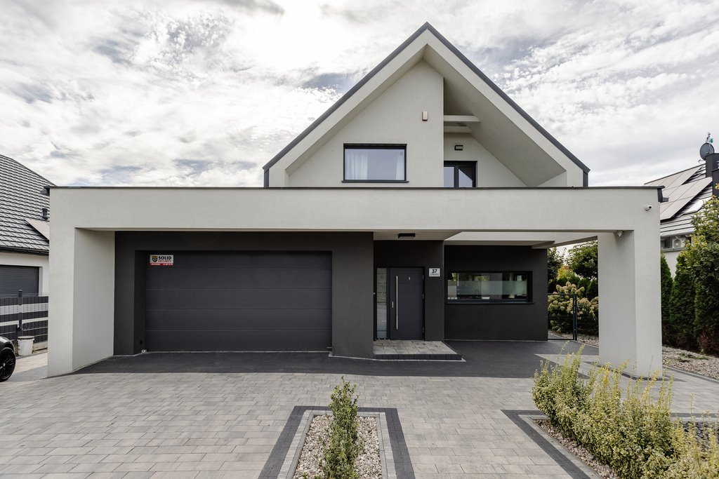 Dom wybudowany z bloczków Silka firmy Xella, pokryty wysokiej jakości tynkiem.