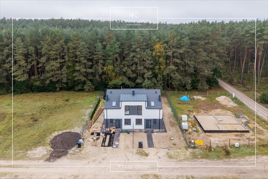 Ten nowoczesny bliźniak w Radzynach, tuż przy samej ścianie lasu, to połączenie spokoju, natury i nowego, pachnącego świeżością domu w stanie deweloperskim.