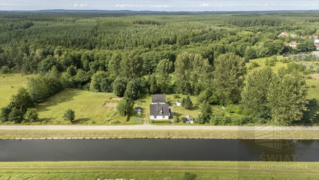 Całość znajduje się na dwóch sąsiadujących działkach, Pierwsza zabudowana jest budynkiem mieszkalnym jednorodzinnym wybudowanym przed 1939r, parterowym z użytkowym poddaszem o łącznej pow. użytkowej 110,51 m2 oraz częściowym podpiwniczeniem o pow. 12,44 m2. Na parterze wydzielono 2 pokoje, salon, łazienkę, kuchnię, przedpokój, ganek o pow. 72,49m2, na poddaszu wydzielono salon z kominkiem, sypialnia, wc, umywalka, 2 strychy, obiekt po remoncie generalnym z 2020r Ponadto na działce znajduje się budynek gospodarczy parterowy z gospodarczym poddaszem o pow. użytkowej 65,60 m2 w tym parter 41,47m2, poddasze 24,13 m2. Działka uzbrojona w sieć energetyczną, wodociągową, brak zdalnej sieci gazowej, kanalizacyjnej, odprowadzenie ścieków z budynku mieszkalnego do oczyszczalni przydomowej, ogrzewanie gazowe, zasilane z butli zamontowanej na zewnątrz. Teren nie objęty planem miejscowym, w poprzednim planie opisany jako teren usług turystycznych, mieszkalnictwa jednorodzinnego. Na drugiej działce znajduję się szklarnia, budynek mniejszy gospodarczy oraz studnia głębinowa.