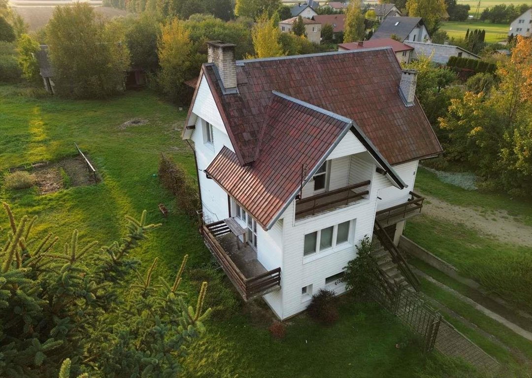 Oferujemy w sprzedaży funkcjonalny dom jednorodzinny w całości podpiwniczony z wolnostojącym budynkiem gospodarczym (stolarnią) posadowiony na dużej działce. Nieruchomość składa się z dwóch kondygnacji. Parter zajmuje kuchnia, przedpokój, dwa pokoje w tym dzienny z balkonem oraz łazienka z wc i kabiną prysznicową. Na piętrze mieszczą się trzy pokoje w tym jeden z balkonem, oraz łazienka z wanną.
