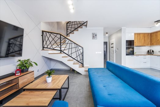 Wnętrze zachwyca nowoczesnym stylem i wysoką jakością. Na parterze znajdziesz jasny salon z kuchnią. Kuchnia posiada pełne wyposażenie w sprzęt AGD. Na piętrze czekają trzy ustawne sypialnie i łazienka.