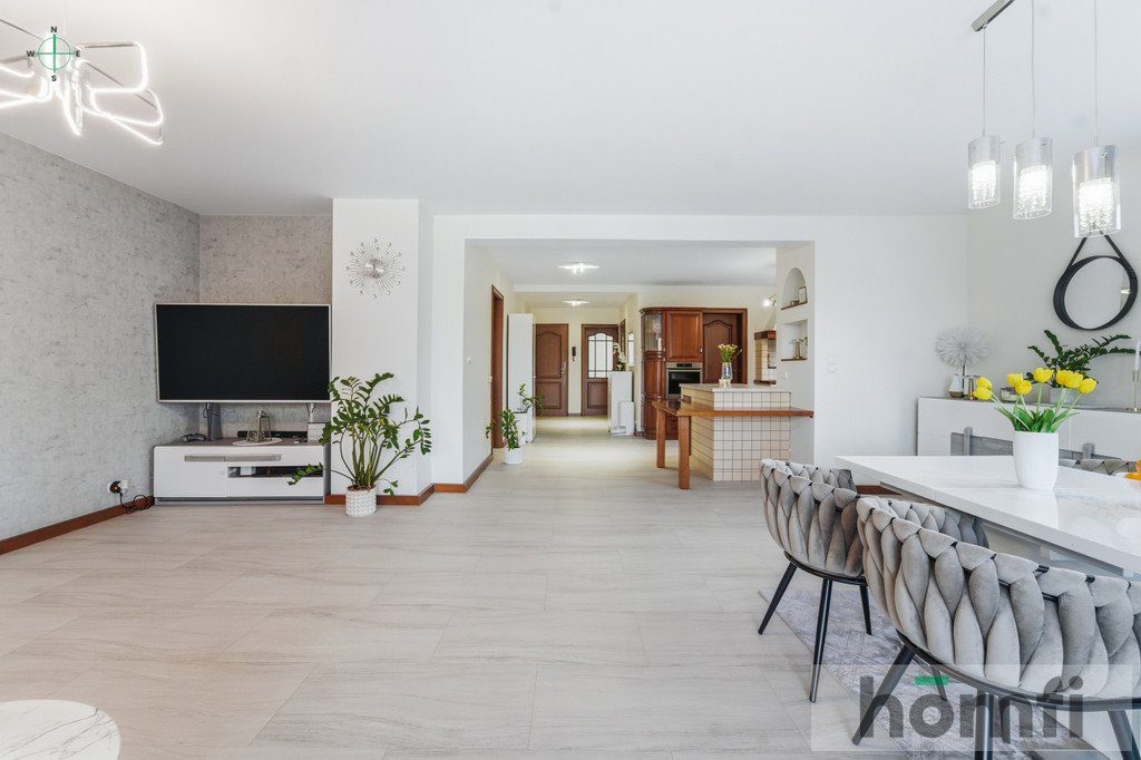 HOUSE The interior of the house underwent a general renovation in 2019 using premium materials. The layout of the rooms allows for comfortable use by two families – each floor has its own kitchen, two bathrooms, and a spacious living area.