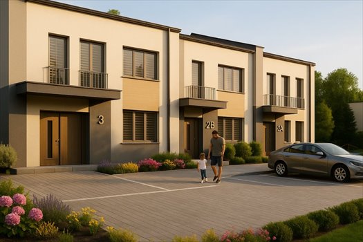Na sprzedaż skrajny dom w zabudowie szeregowej w nowej inwestycji przy ul. Porąbki, blisko ul. Budziwojskiej w Rzeszowie.