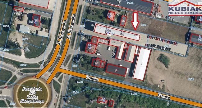 Położenie działki jest unikatowe, jedyna do sprzedaży w takiej lokalizacji, z bezpośrednim wjazdem z Alei Krakowskiej, blisko ronda i wjazdu/zjazdu na/z drogi ekspresowej S7.