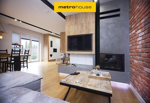 Z przestronnego salonu można bezpośrednio wyjść na słoneczny taras i zadbany ogród – idealne miejsca na relaks na świeżym powietrzu. Dodatkowo, przytulną atmosferę robi kominek opalany drewnem.