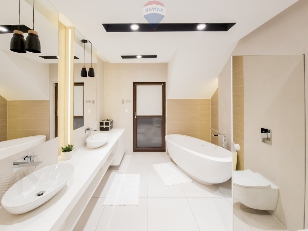 Budynek w stylu nowoczesnym ma 180 m² powierzchni, został wykończony w wysokim standardzie. Posiada starannie zagospodarowany ogród z pięknym tarasem usytuowanym na dwie strony świata z urządzoną pergolą.
