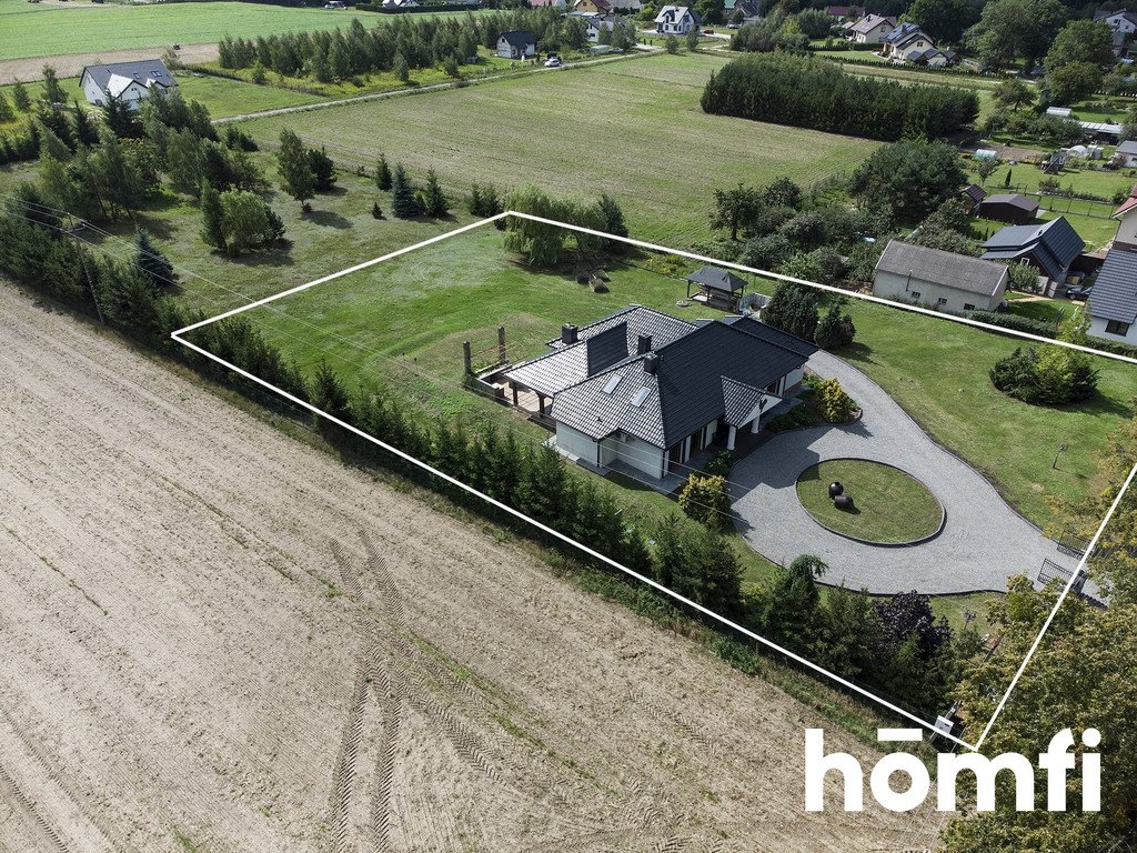 A UNIQUE, BEAUTIFUL HOUSE SITUATED ON A PLOT OF APPROX. I have a unique offer for you: a house with a beautiful garden on a plot of approximately 4500 m². This meticulously crafted 447 m² house is designed with coziness, space, comfort, functionality, and timeless elegance in mind. It is also possible to purchase a larger plot (totaling 9200 m²). PROPERTY: Location: The house is located in the picturesque village of Skarszewo in the Świecie commune, near forested areas and just a few hundred meters from Lake Deczno. The 4500 m² plot is surrounded by meadows and beautifully maintained single-family homes. The single-story house, with an attic totaling 447 m² (floor area), offers incredible space, ideal for discerning individuals and meticulously crafted. The heart of the house is the spacious living room with a very high ceiling, a dining area, and an open, bright kitchen. The living room is equipped with lounge furniture, a large TV, and a fireplace, with glass windows on two walls. The dining room features a large 10-seater table, perfect for family gatherings, and a smaller 6-seater table, perfect for a more intimate family breakfast. The open, bright kitchen has been thoughtfully designed, which will surely appeal to those who enjoy cooking. Beautiful cabinetry, which harmonizes with the rest of the home, adds charm to the entire space. The kitchen is equipped with high-quality appliances: two refrigerators, a freezer, an 8-burner gas hob, an oven, a microwave, a sink, a kitchen island, and a full set of dishes. Next to the kitchen is a pantry. On the ground floor, there's a spacious bathroom – a bathroom with a shower and space for a free-standing bathtub – and a large bedroom with its own walk-in closet and access to the terrace. The mezzanine, accessed by wooden stairs from the living room, features a very large room, currently serving as a study. Additionally, a large walk-in closet offers much more space than the freestanding wardrobes. From the study, you can access a large bedroom upstairs, illuminated by a skylight and with its own bathroom. The basement contains all the house's technical facilities – a central vacuum cleaner, water softener, laundry and drying room, storage room, boiler room, a charming wine cellar, a double garage, and a garden room with garden equipment and an additional toilet, accessible from outside. The house has underfloor heating and air conditioning. The terrace at the back of the house offers a large, almost 40-square-meter space for relaxing and gathering with friends. There's also a summer kitchen, where you can cook and grill on the terrace during the spring and summer months, while enjoying the fresh air in the garden. The garden is landscaped with plantings and trees, and is spot-lit. Outside, you'll also find a firewood shelter, a roundabout in front of the house for easy car access, an electric gate, a partially brick fence, and beautifully maintained trees and flowers. The house is being sold fully furnished and equipped, as seen in the photos. This is a unique offer for those seeking a luxurious home surrounded by nature, away from the hustle and bustle of the city. FINANCE: PLN 1,290,000 for a house with a 4,500 m² plot; PLN 1,700,000 for a house with a larger plot (9,200 m²). ADDITIONAL SERVICES AVAILABLE FOR BUYERS - ASK: Free Notary, Mortgage Counseling, Interior Design, Moving Services, Apartment Painting, Property Rental. I highly recommend and invite you to a viewing! Interested? Contact us at +48 7pokaż telefon or send us an email using the contact form in the ad. Did you know that with homfi, you can buy a property comprehensively, taking care of everything with one company? In addition to real estate agents who help you find and purchase properties, we also provide experienced mortgage experts, talented interior designers, and resourceful rental management specialists. This means you can find a property with us, finance its purchase, design and finish its interior, and then sell or rent it, with the option of letting us manage the rental. Interested? Ask your listing manager for details.