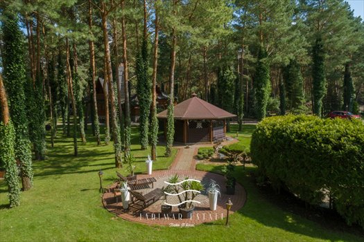Już na działce o powierzchni 7291m2 w pięknym sosnowym lesie, zostały zaplanowane i starannie przygotowane różne strefy relaksu i aktywności. Można wykąpać się w jeziorze lub na elegancko zaaranżowanym tarasie opalać się na leżakach, z lampką dobrego wina, kontemplować przepiękną przyrodę, las, szum wodospadu, oczko wodne, równo przystrzyżone trawniki, urocze, brukowane alejki i przejścia pod baldachimem zieleni. W strefie za domem można udać się na grzyby lub podziwiać wiewiórki i ptaki. Jest też miejsce na letnie imprezy z grillem w dużej, bardzo ładnej, drewnianej altanie. W domu można organizować spotkania w ogrodzie zimowym z panoramicznym widokiem na las. Można skorzystać z sauny i solarium.