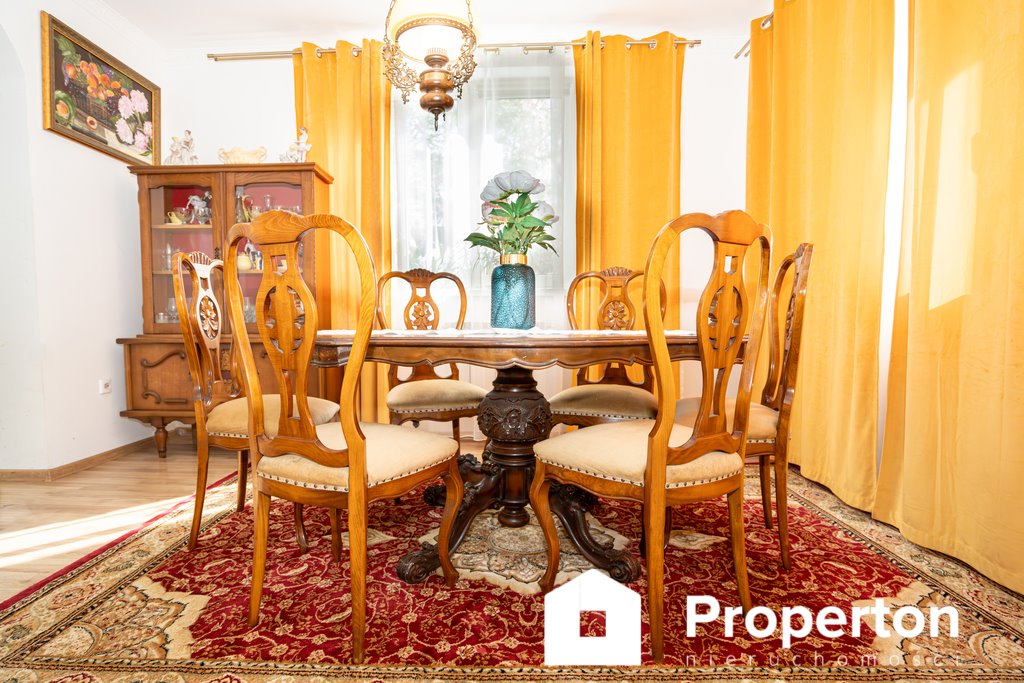 •Jadalnia: Połączona płynnie z salonem, stanowi idealne miejsce na rodzinne posiłki. W jadalni znajdują się dwa okna przez które wpadają promyki słońca.