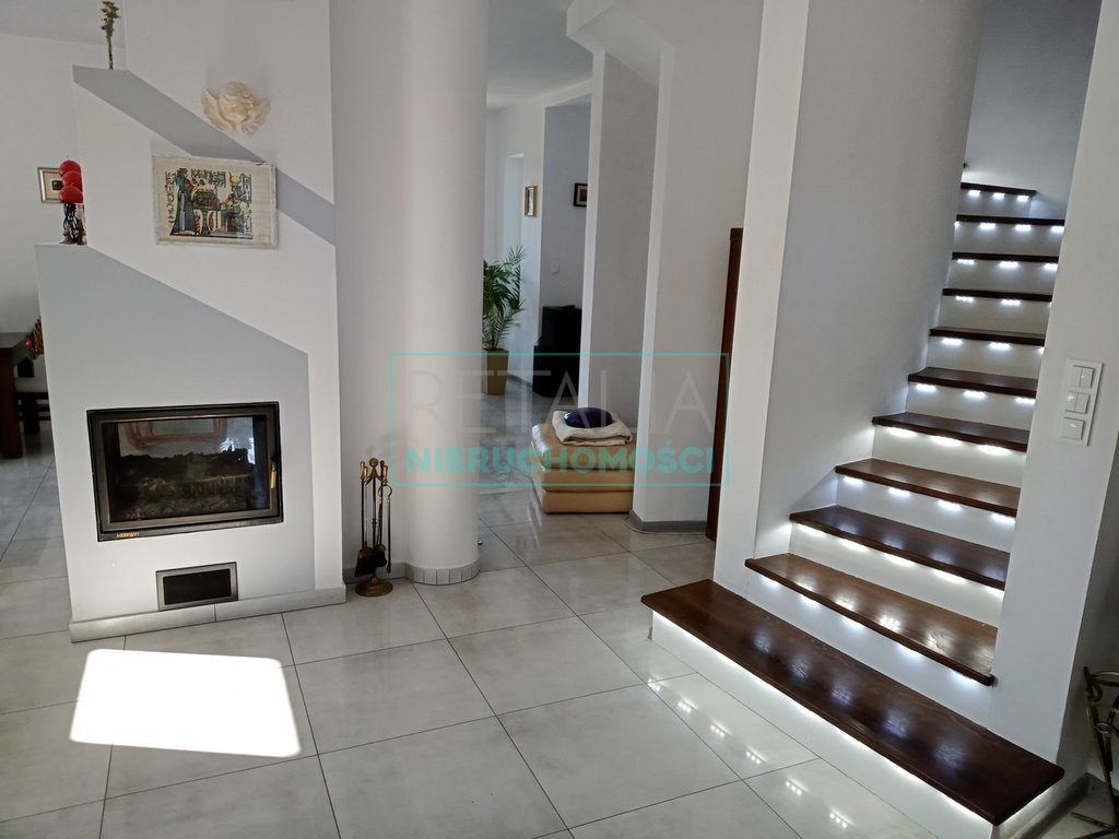 Dwa kominki, jeden w salonie natomiast drugi w części bilardowo-kinowej- w podpiwniczeniu.