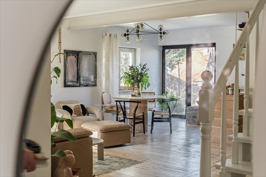 Dom jest jasny, dobrze doświetlony. Wnętrze spójnie zaaranżowane przez architekta z użyciem naturalnych materiałów typu kamień czy drewno. Układ funkcjonalny i zaprojektowany tak, aby wygodnie mieszkało się tam rodzinie.