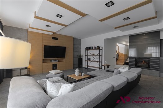 Całość uzupełniają rolety elektryczne, brama automatyczna oraz wiata na dwa auta i drewniany warsztat, który może pełnić funkcję garażu np. dla motocykli.